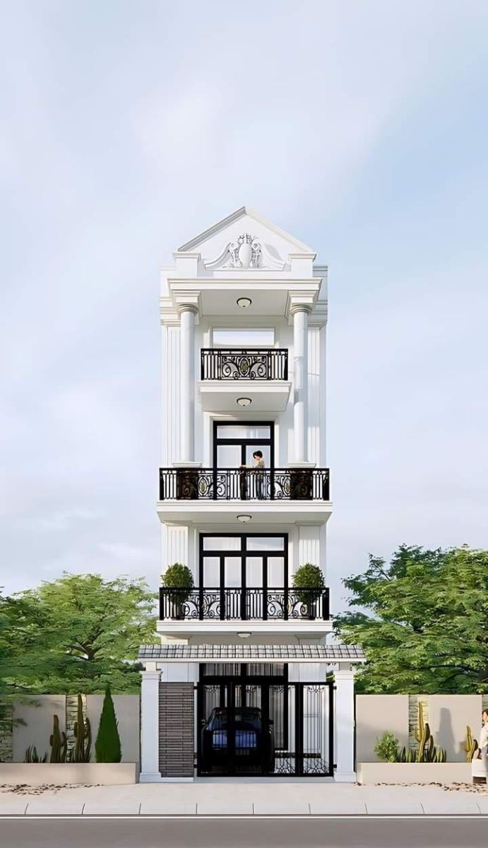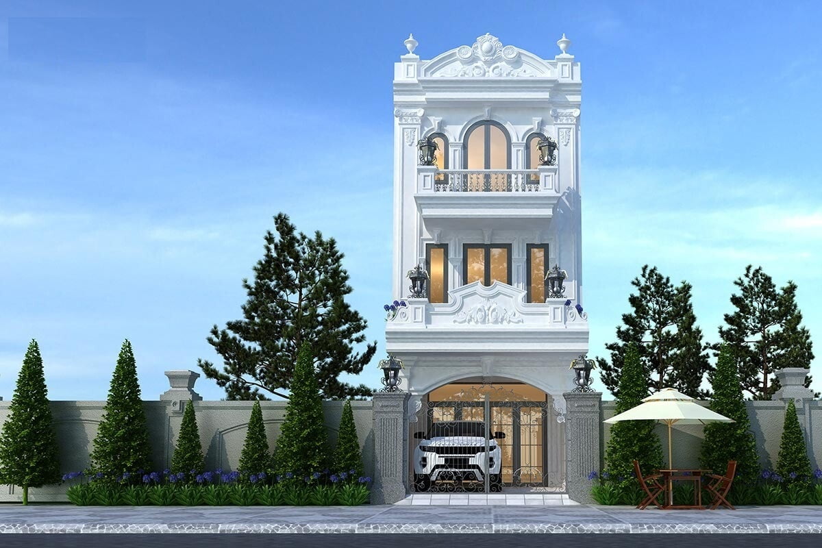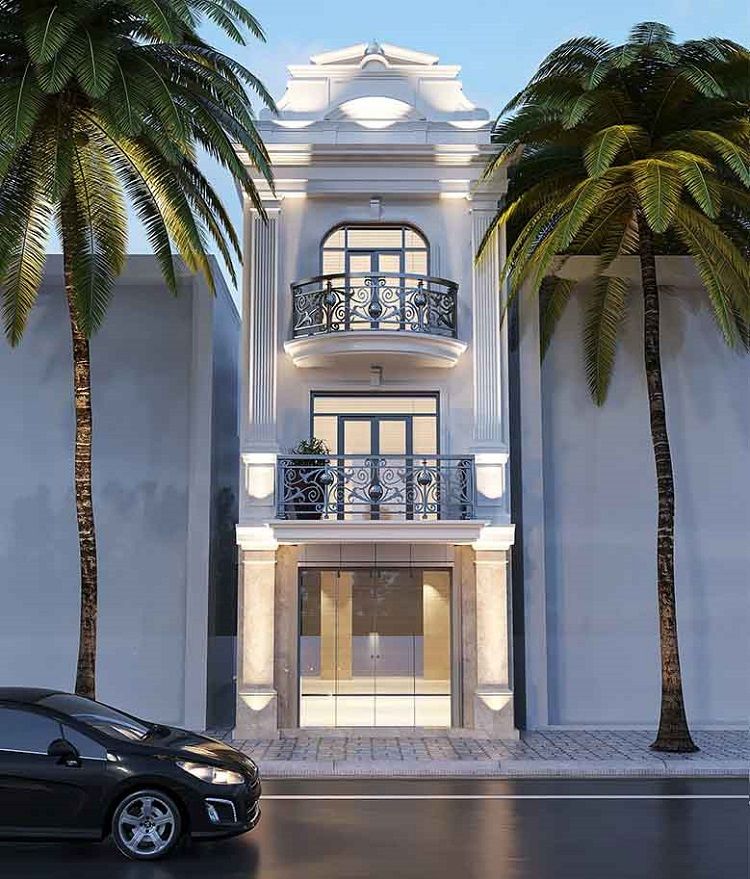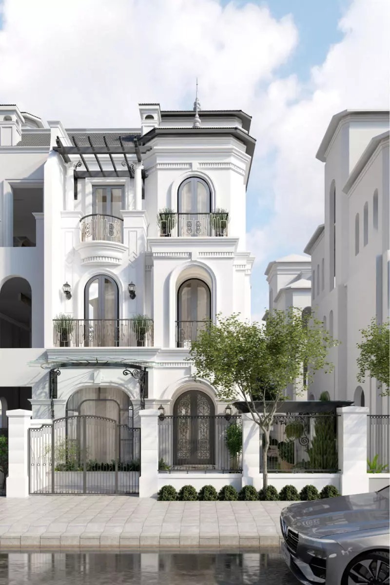 Gam màu trắng tinh khôi kết hợp cùng phào chỉ, hoa văn tỉ mỉ tạo nên vẻ đẹp sang trọng, thời thượng. Mẫu nhà 3 tầng này được tối ưu với cửa kính lớn, lan can sắt nghệ thuật giúp không gian thêm phần thoáng đãng, vừa mang tính thẩm mỹ cao vừa thể hiện cá tính của gia chủ.