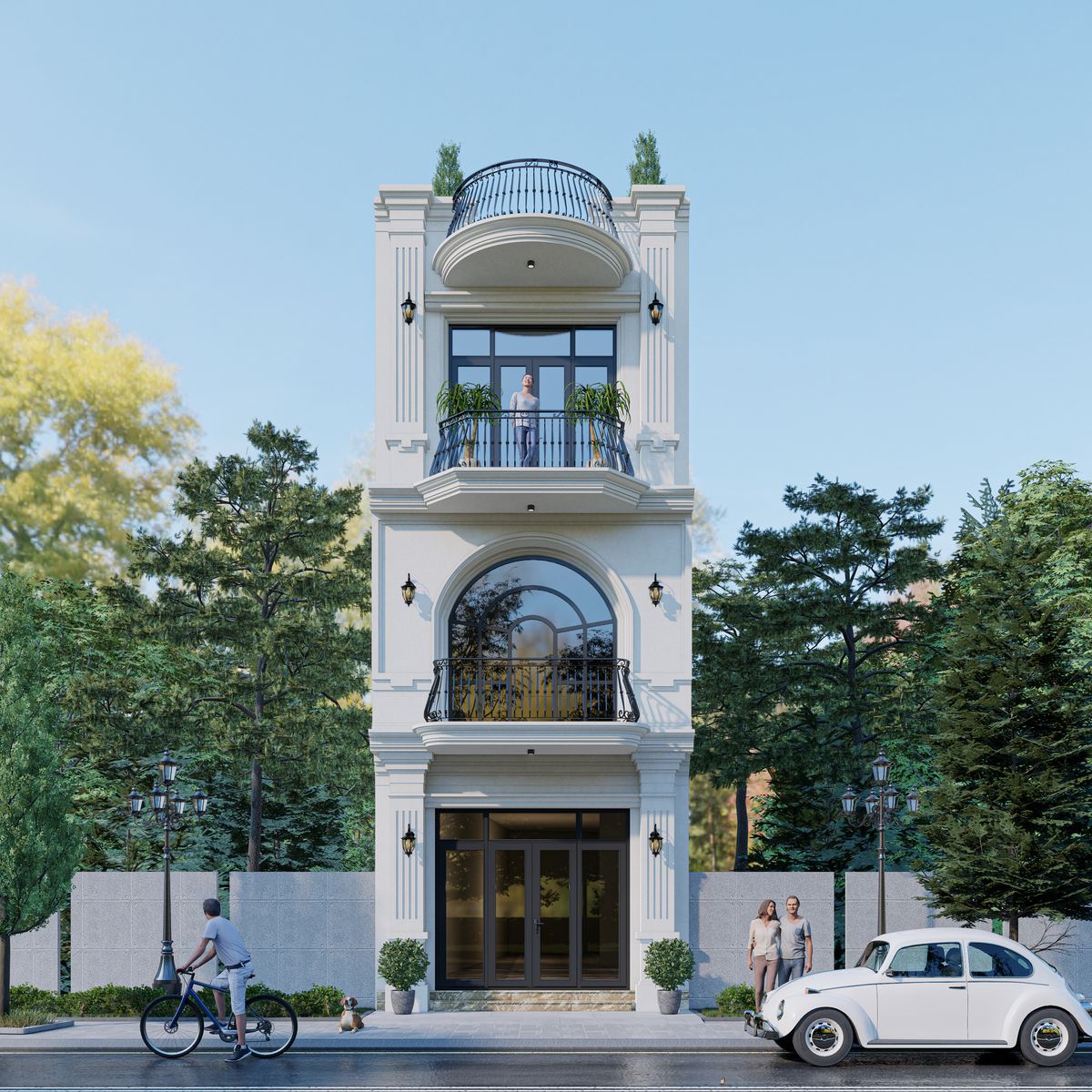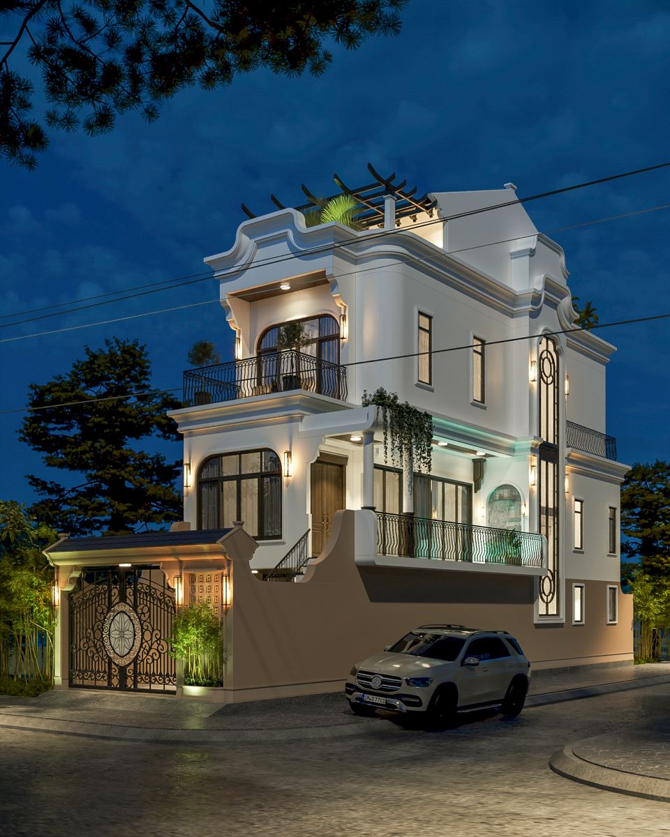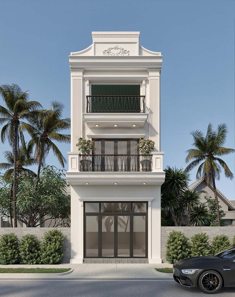 Gam màu trắng tinh khôi kết hợp cùng phào chỉ, hoa văn tỉ mỉ tạo nên vẻ đẹp sang trọng, thời thượng. Mẫu nhà 3 tầng này được tối ưu với cửa kính lớn, lan can sắt nghệ thuật giúp không gian thêm phần thoáng đãng, vừa mang tính thẩm mỹ cao vừa thể hiện cá tính của gia chủ.