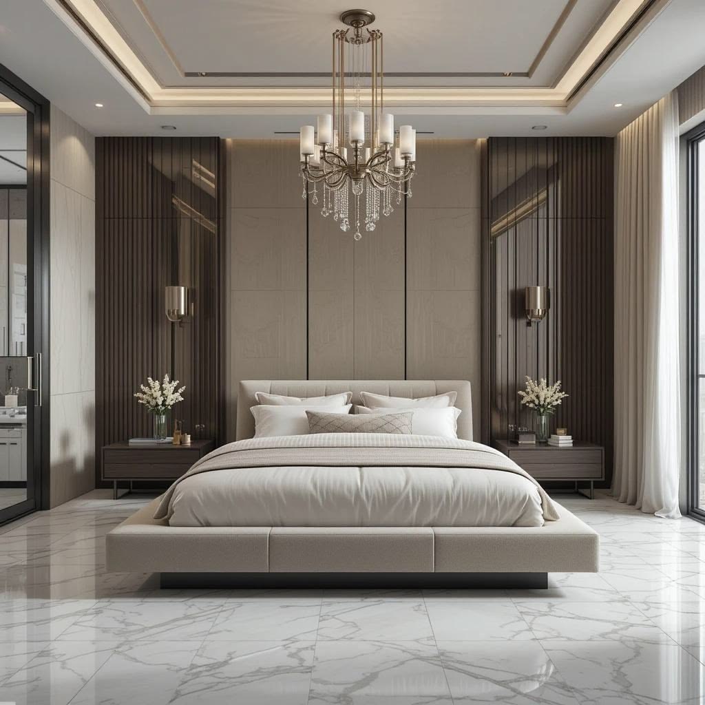 Vật liệu đồng bộ, chất lượng cao: Gỗ, đá, da, vải nỉ… nên được lựa chọn thống nhất về phong cách, đảm bảo độ bền và nâng tầm giá trị thẩm mỹ cho phòng ngủ master.