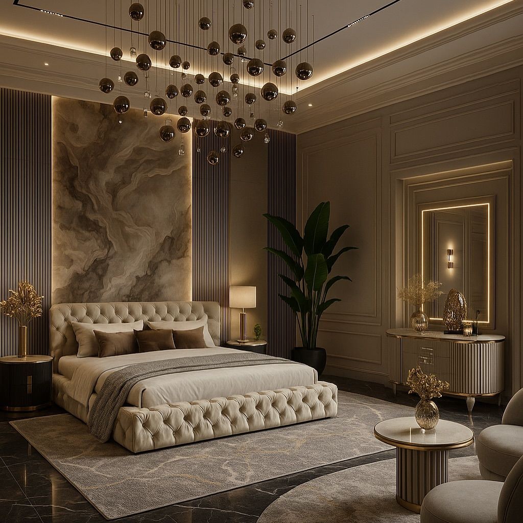 Chiếu sáng đa lớp: Phối hợp đèn trần, đèn hắt trần, đèn đầu giường và đèn trang trí nhằm đáp ứng nhiều nhu cầu sử dụng khác nhau, từ sinh hoạt đến thư giãn.