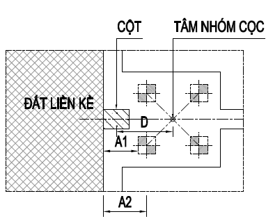 Khi thiết kế móng cọc, ngoài việc xác định khoảng cách giữa hai cọc liền kề, kỹ sư cần đặc biệt quan tâm đến các yếu tố sau: khoảng cách giữa các hàng cọc thường được bố trí bằng 1,5 – 2 lần khoảng cách giữa hai cọc liên tiếp, trong khi khoảng cách từ mép móng đến tim cọc ngoài cùng không được nhỏ hơn 1,5 lần đường kính cọc.