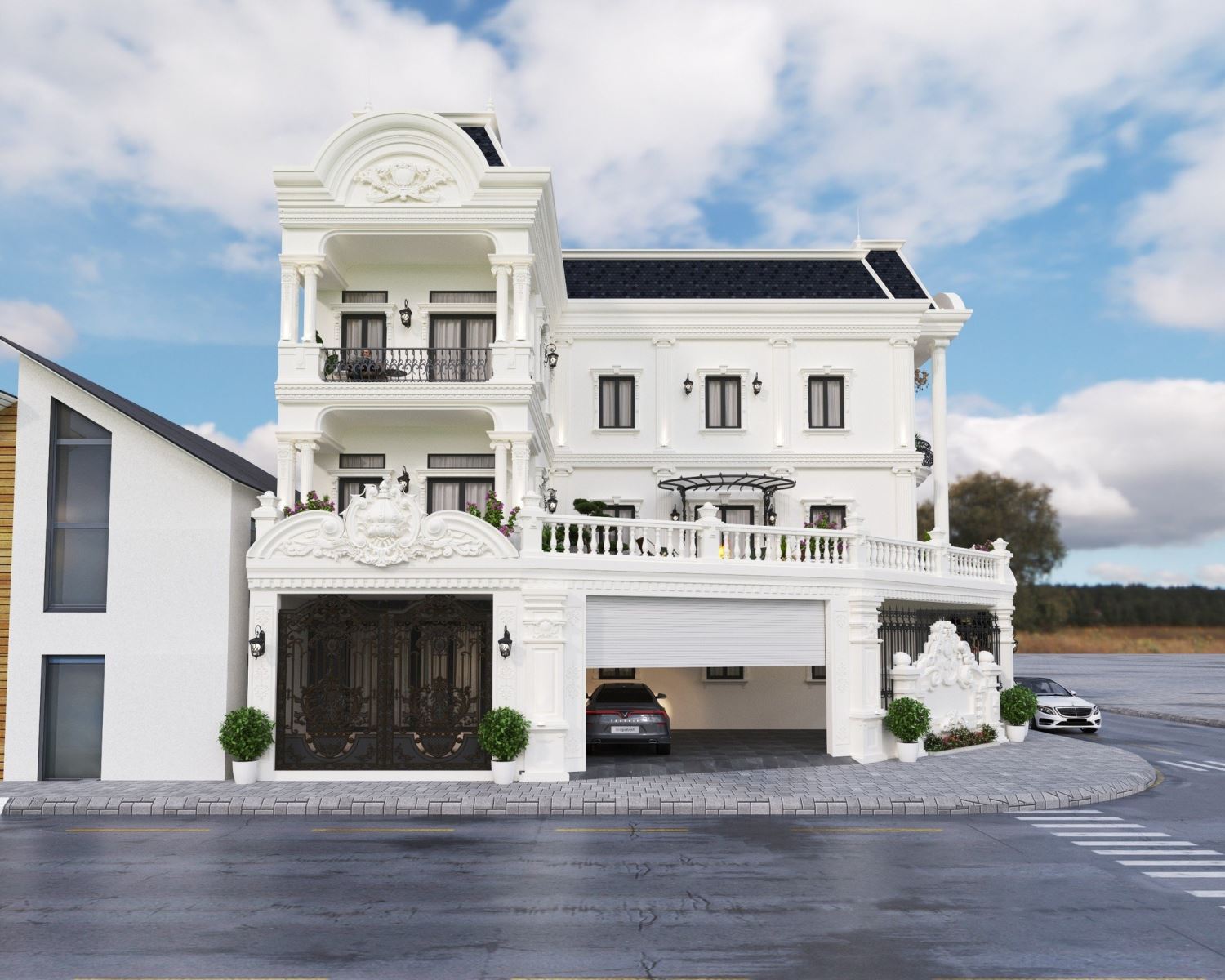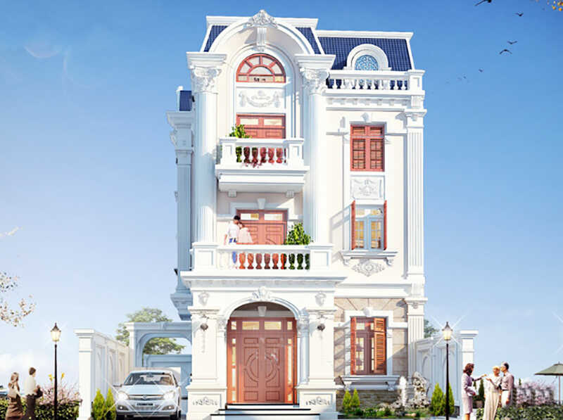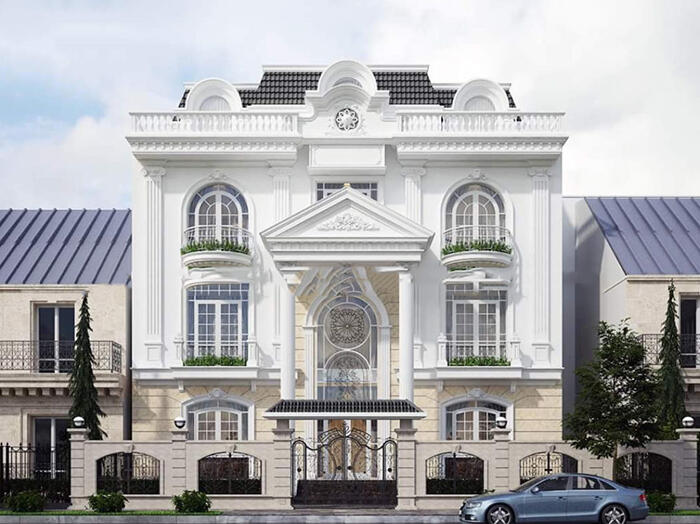 Mẫu biệt thự 2 tầng cổ điển Pháp chinh phục người nhìn bởi dáng vẻ bề thế và kiến trúc tinh xảo. Hệ mái Mansard vững chãi kết hợp cùng các chi tiết phào chỉ cầu kỳ, hoa văn đắp nổi tinh tế tạo nên tổng thể hài hòa, sang trọng.