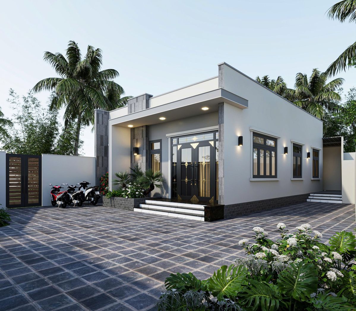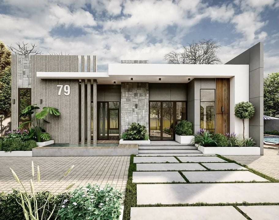Thiết kế nhà cấp 4 mặt tiền 9m theo phong cách hiện đại đang trở thành xu hướng phổ biến nhờ sự tối giản nhưng vẫn tinh tế. Kiến trúc hiện đại thường tập trung vào các hình khối mạnh mẽ, đường nét dứt khoát và không gian mở nhằm tạo cảm giác rộng rãi, thông thoáng.