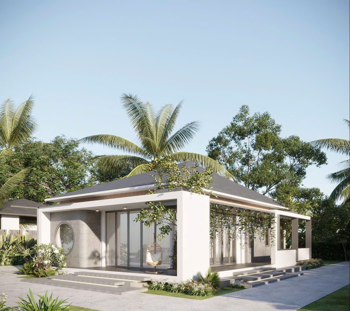 Gia chủ có thể tận dụng khu vực sân để trồng cây xanh, bố trí tiểu cảnh, đặt bàn trà hoặc làm nơi vui chơi cho trẻ nhỏ. Sự kết hợp giữa kiến trúc nhà ở và yếu tố thiên nhiên giúp nâng cao chất lượng không gian sống, mang lại cảm giác gần gũi, dễ chịu và cân bằng hơn trong sinh hoạt hằng ngày.