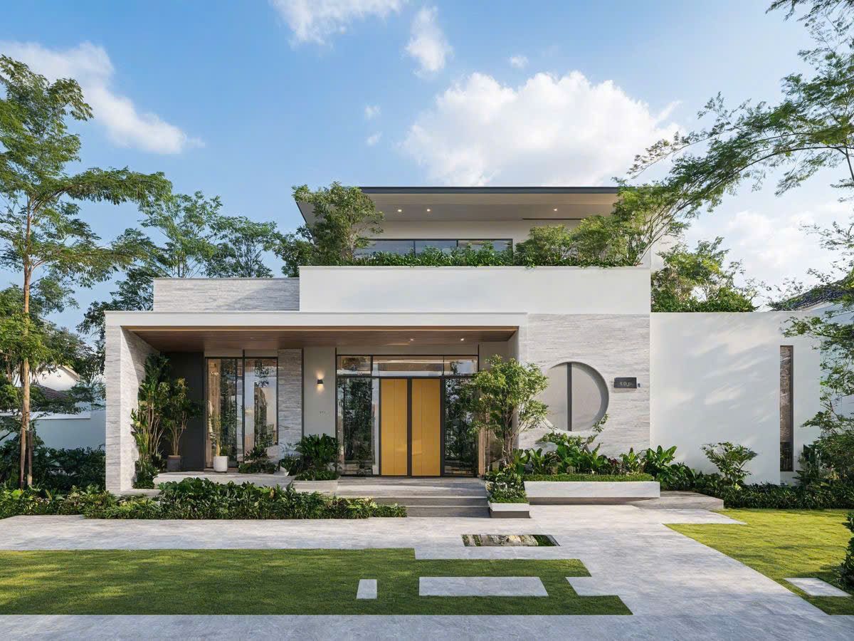 Mặt tiền thường được trang trí bằng các chi tiết phào chỉ nhẹ nhàng, cột trụ cân đối và hệ cửa lớn tạo sự bề thế. Gam màu phổ biến là trắng kem, vàng nhạt hoặc xám kết hợp cùng hệ mái nổi bật. Dù không quá cầu kỳ như kiến trúc cổ điển, nhưng phong cách tân cổ điển vẫn mang lại cảm giác sang trọng và giá trị thẩm mỹ lâu dài cho ngôi nhà.