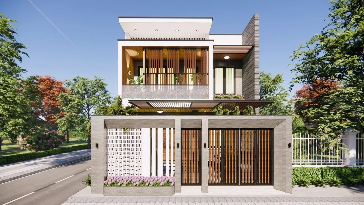 Vật liệu cổng thường đa dạng như sắt, nhôm đúc, bê tông kết hợp gỗ hoặc lam trang trí, giúp tăng giá trị kiến trúc và thể hiện gu thẩm mỹ của gia chủ ngay từ mặt tiền.