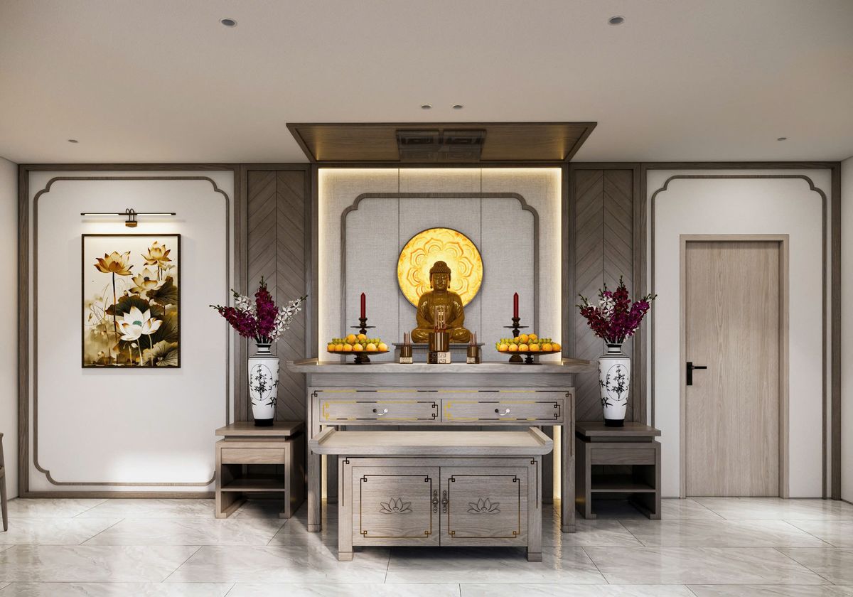 Ngoài yếu tố phong thủy, hướng bàn thờ cần đảm bảo tính hài hòa với không gian kiến trúc. Bàn thờ nên đặt ở nơi trang trọng, cao ráo, tránh đối diện cửa chính hoặc nằm gần lối đi nhiều người qua lại.