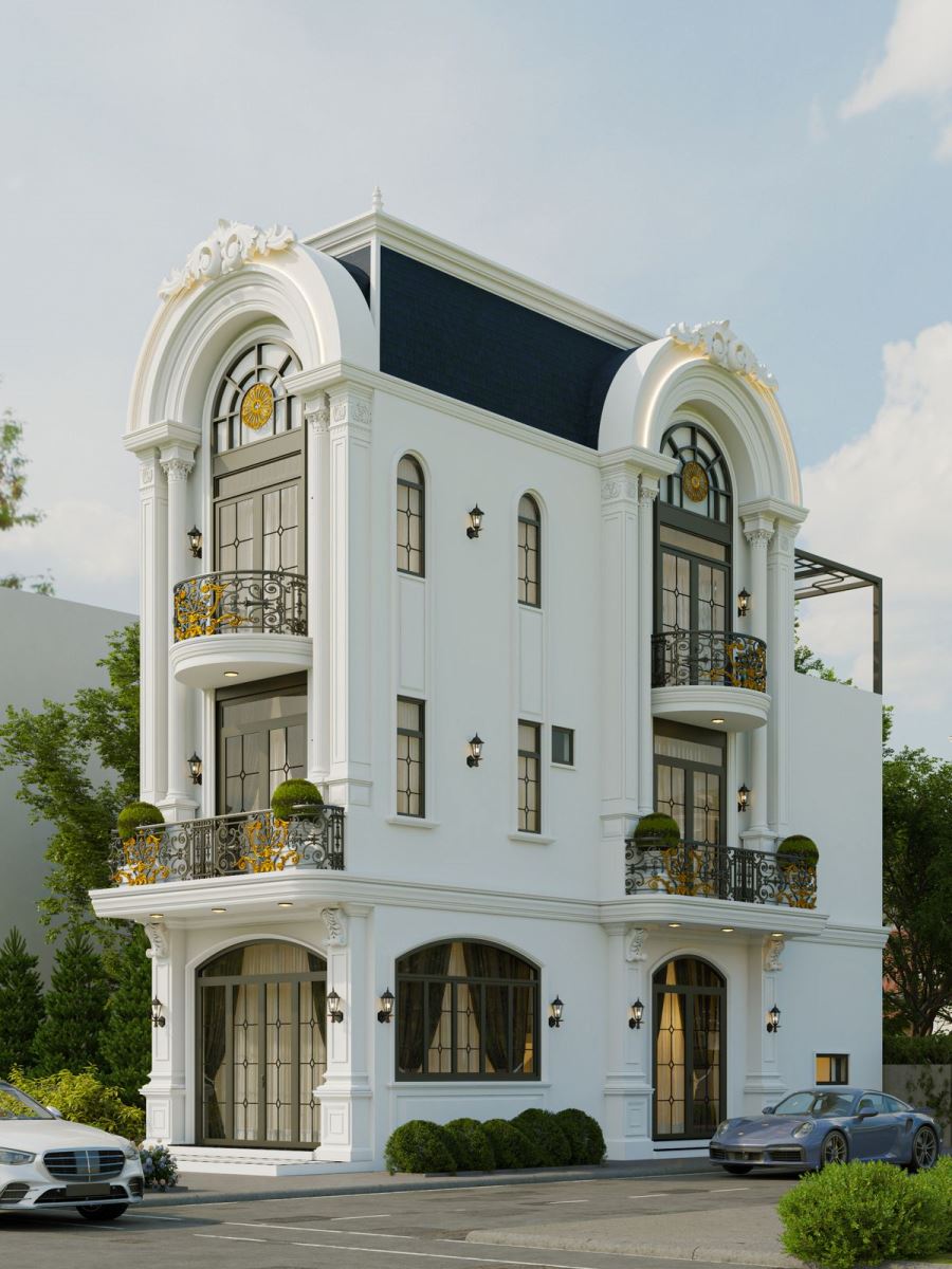 Biệt thự 2 tầng phong cách cổ điển Pháp thường khoác lên mình gam màu trắng tinh khôi làm chủ đạo, giúp phô diễn trọn vẹn những đường nét kiến trúc mềm mại, thanh thoát.