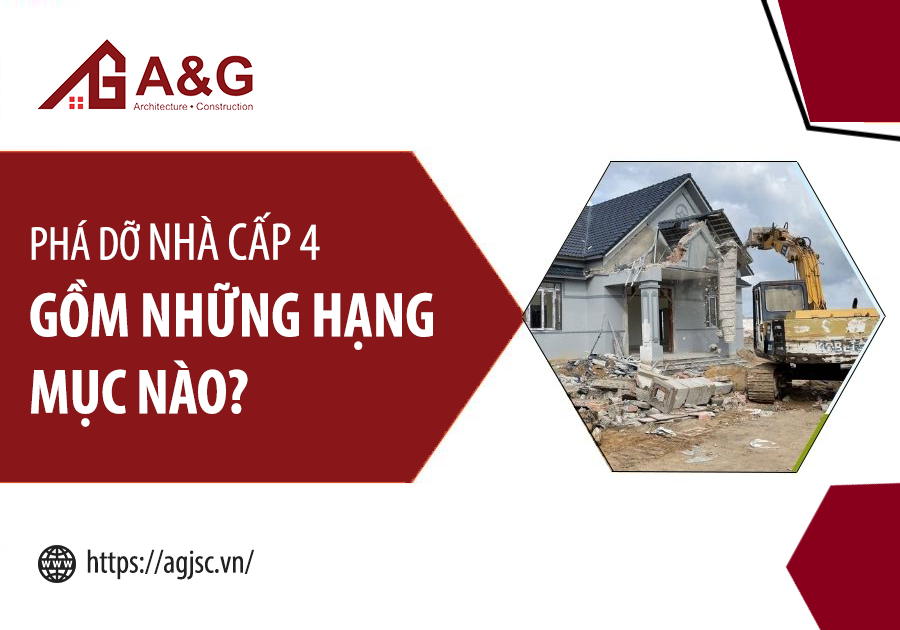 Quá trình phá dỡ nhà cấp 4 thường bao gồm nhiều hạng mục khác nhau, được thực hiện theo trình tự nhằm đảm bảo an toàn và tối ưu hiệu quả thi công. Cụ thể: