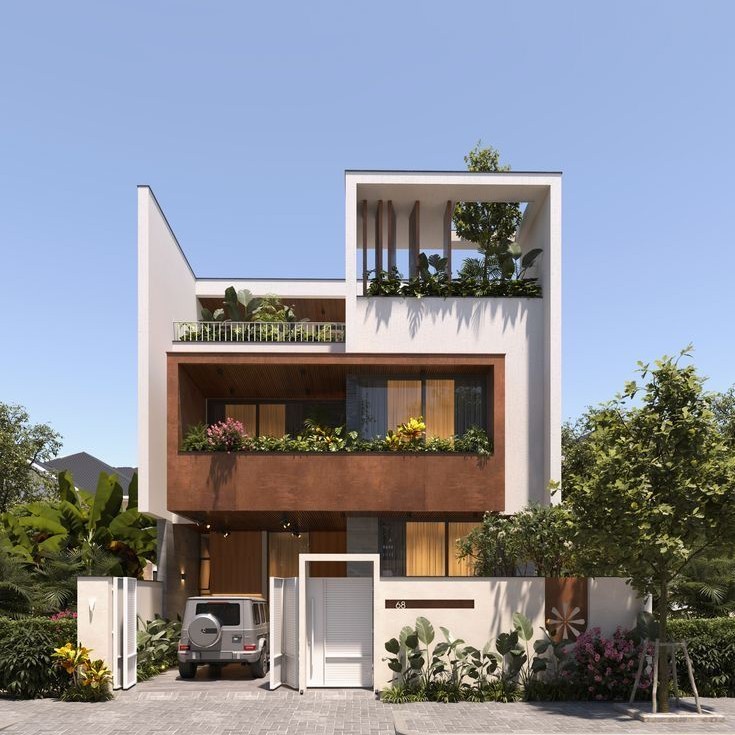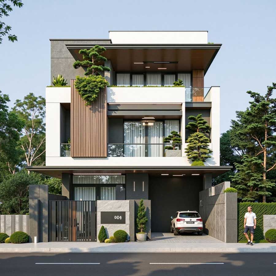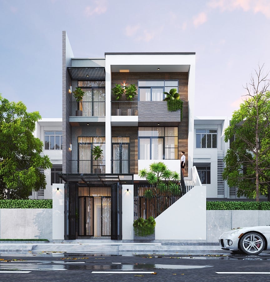 Một mẫu nhà ống 3 tầng đẹp không chỉ dựa vào kiến trúc bên trong mà còn cần sự cân đối với sân vườn phía trước. Gia chủ nên chú trọng đến việc tạo sự hài hòa giữa các yếu tố kiến trúc, màu sắc, vật liệu và bố trí cây xanh để tổng thể nhà và sân vườn vừa đẹp mắt, vừa đáp ứng đầy đủ công năng cho mọi thành viên trong gia đình. Sự cân đối này giúp không gian trở nên ấn tượng và thu hút ánh nhìn từ bên ngoài.