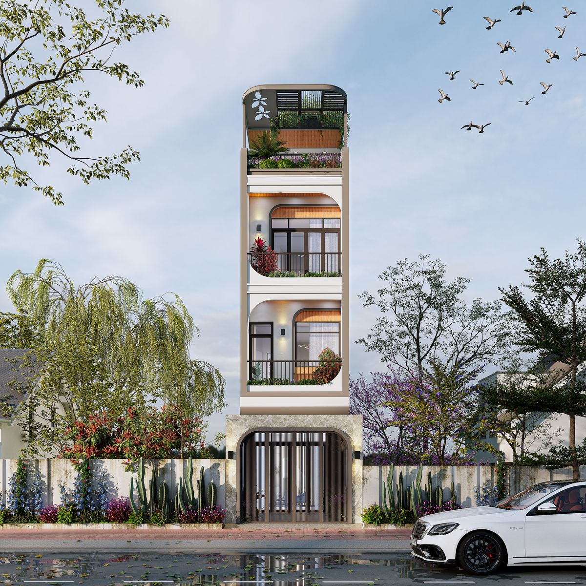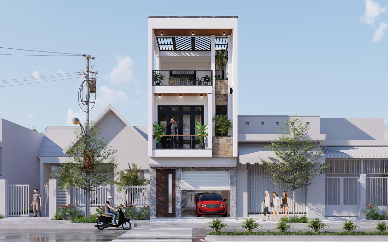 Với diện tích chiều ngang hạn chế, kiến trúc sư thường chú trọng giải pháp giếng trời, ban công và hệ cửa sổ lớn nhằm tăng độ thông thoáng cho ngôi nhà. Thiết kế này phù hợp với những gia đình cần không gian sống rộng rãi hơn trong khu vực đô thị.
