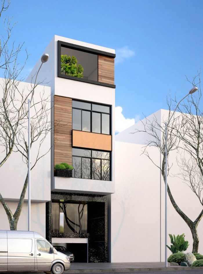 Đặc điểm dễ nhận thấy nhất của mẫu nhà này là mặt tiền chỉ khoảng 3m nhưng chiều sâu lên đến 15m. Mặt tiền hẹp đòi hỏi kiến trúc sư phải xử lý khéo léo về hình khối và vật liệu để tạo điểm nhấn cho công trình.
