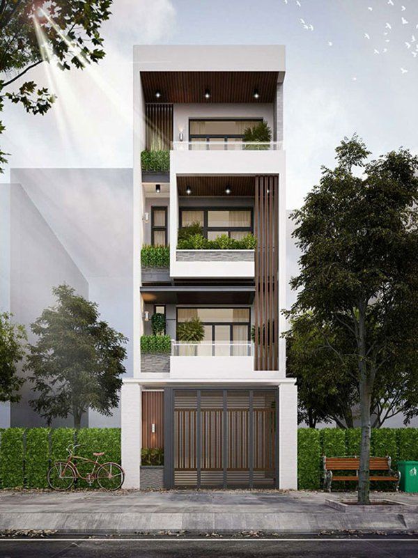 Phong cách hiện đại là lựa chọn phổ biến đối với các mẫu nhà có mặt tiền hẹp. Thiết kế tập trung vào sự tối giản trong hình khối, hạn chế các chi tiết rườm rà và ưu tiên công năng sử dụng. Các vật liệu như kính, bê tông, thép hoặc gỗ thường được kết hợp để tạo nên mặt tiền trẻ trung và thoáng sáng.