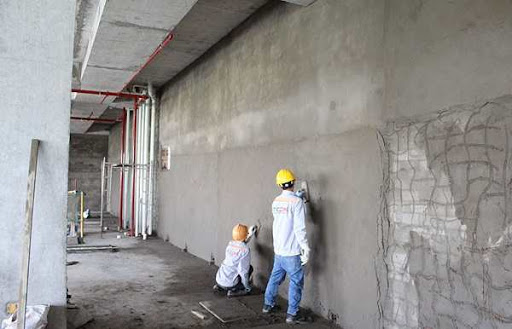 Kiểm tra bằng cảm quan: Có thể dùng tay chạm nhẹ lên bề mặt tường để cảm nhận. Nếu tường khô ráo, không còn cảm giác ẩm, dính tay hay mát lạnh bất thường thì bề mặt cơ bản đã đạt yêu cầu để chuyển sang công đoạn tiếp theo.